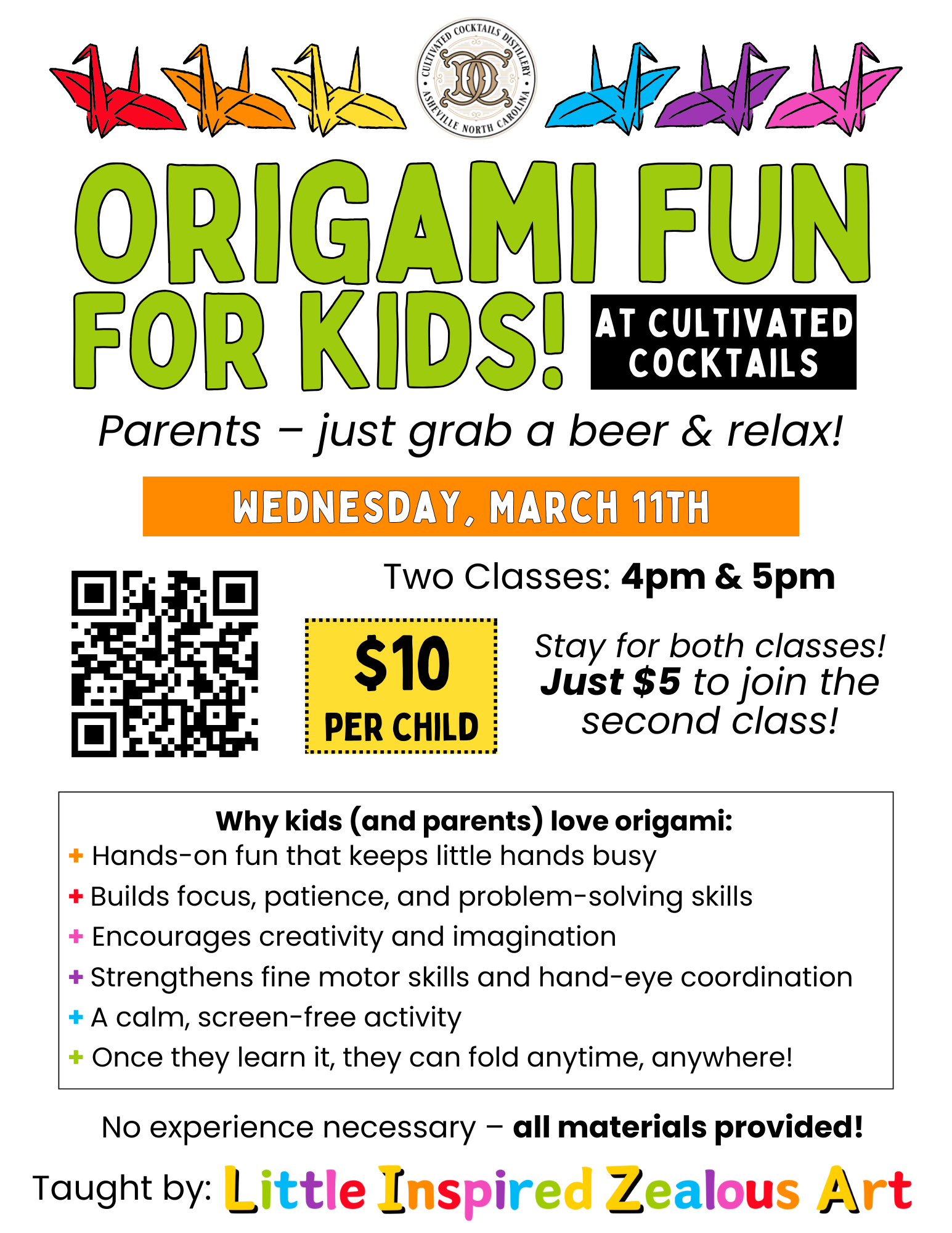 Join me at Cultivated Cocktails in Fairview, NC to learn how to fold origami!